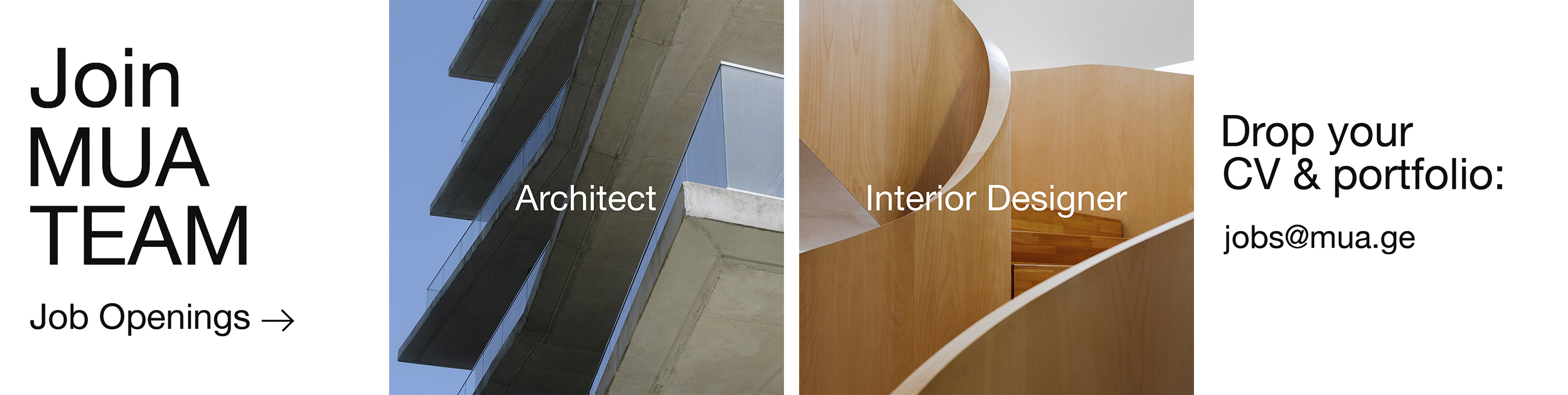 გამოაგზავნე შენი პორტფოლიო და CV მისამართზე - jobs@mua.ge – 10 აპრილის ჩათვლით და მიუთითე subject ველში 'Job Opening - Architect', თუ: